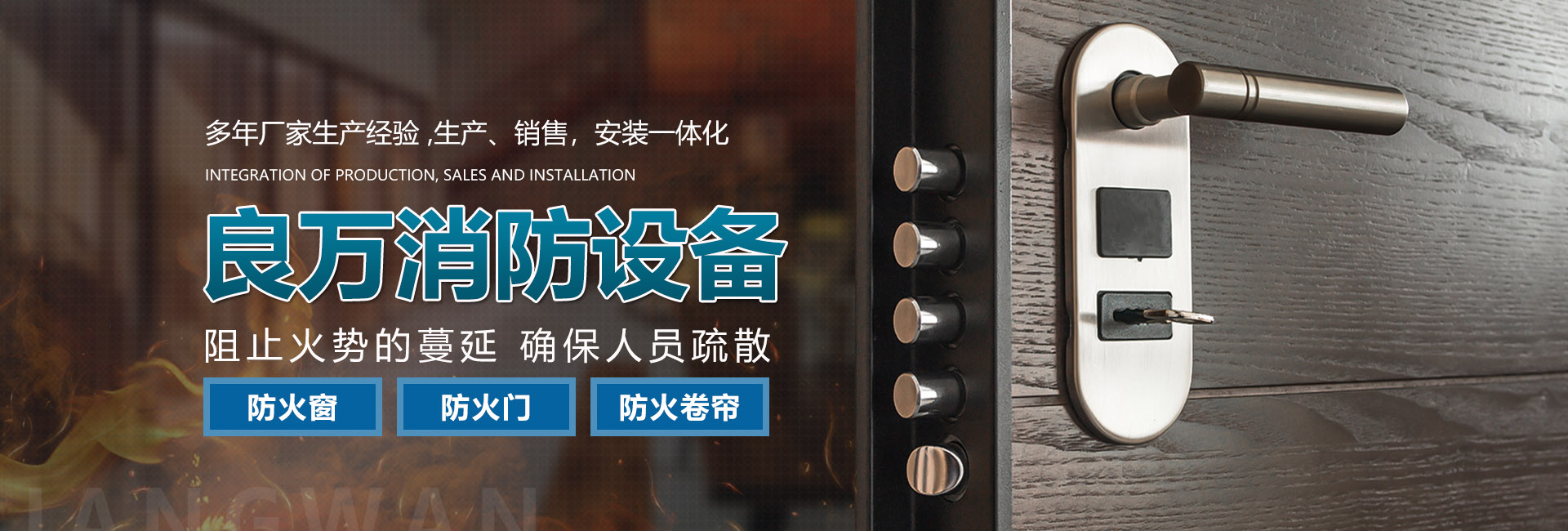 合肥良萬消防設(shè)備有限公司位于合肥市包河工業(yè)園,生產(chǎn)銷售安裝:防火門、防火卷簾門、防火窗等消防安全產(chǎn)品。公司具有研發(fā)、設(shè)計、生產(chǎn)、銷售、及安裝服務(wù)的綜合配套能力。合肥良萬消防設(shè)備有限公司技術(shù)力量強(qiáng),設(shè)備齊全,產(chǎn)品不斷創(chuàng)新,以信譽(yù)立業(yè),客戶滿意是我們永無止境的追求。我們在保證產(chǎn)品質(zhì)量的同時,也十分注重售后服務(wù),保證消防安全產(chǎn)品的正常運(yùn)行。公司始終堅持誠信為本的企業(yè)宗旨,真誠希望與社會各界新老客戶精誠合作,良萬愿與您攜手共創(chuàng)輝煌!